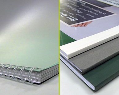 Die Standardausführung unserer Spiralbindungen besteht aus einer opalen Durchsichtfolie als Titelseite und einem starken, weißen Rückkarton.